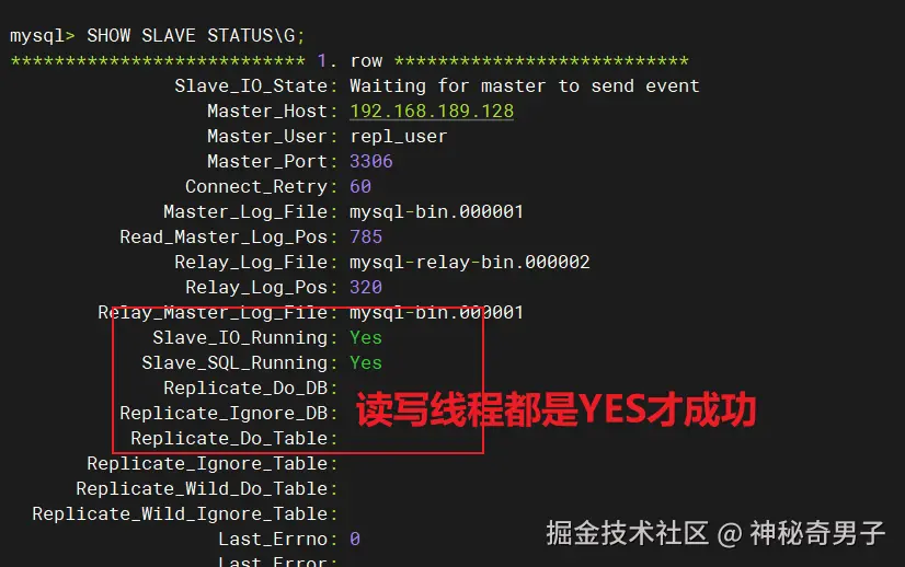 - 从库( Slave ) :处理读操作(SELECT),通过 relay log 同步主库数据
