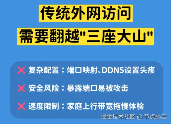 - 配置复杂性:动态域名系统(DDNS)与端口转发要求用户具备网络架构相关知识,并且需要持续维护动态IP映射。