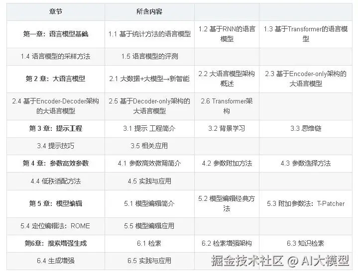 全面系统:内容涵盖了传统语言模型、大语言模型的架构、提示工程、高效参数设置、模型编辑以及搜索增强生成等关键主题。对每个主题都进行了深入的探讨和分析,帮助读者建立全面的知识体系。