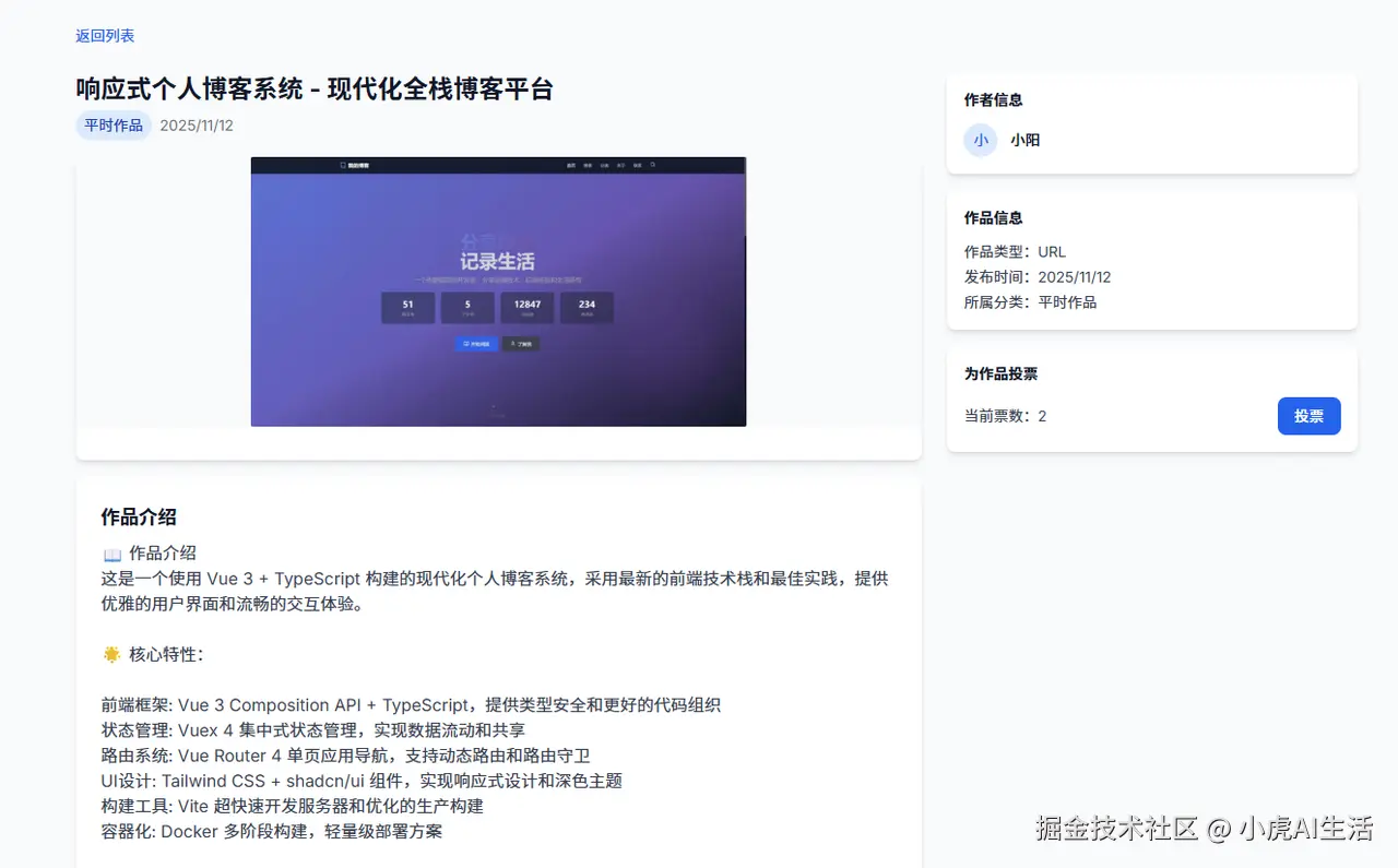 学员 @小阳,零基础起步,直接用 Vue 3 + TypeScript 撸了个《响应式个人博客》。
