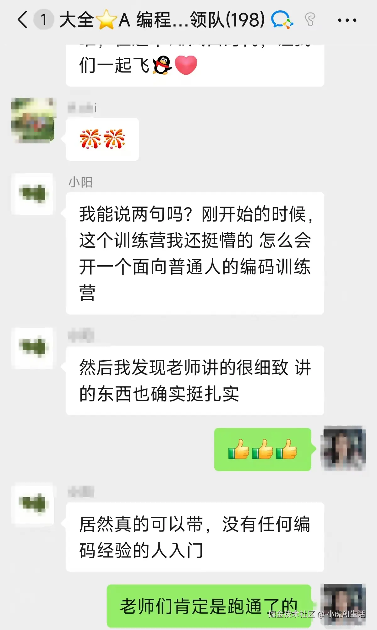 看着群里依然热火朝天地讨论着代码,看着大家为了一个报错互相支招,屏幕这头的我,喝了一杯咖啡,满是欣喜。