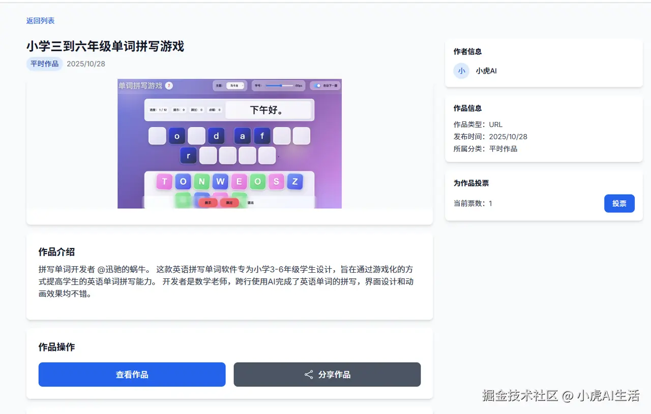 内置分级题库、语音听读、智能批改。 当他把这个发到群里时,我看到了 AI 编程最大的魅力——打破职业的边界。
