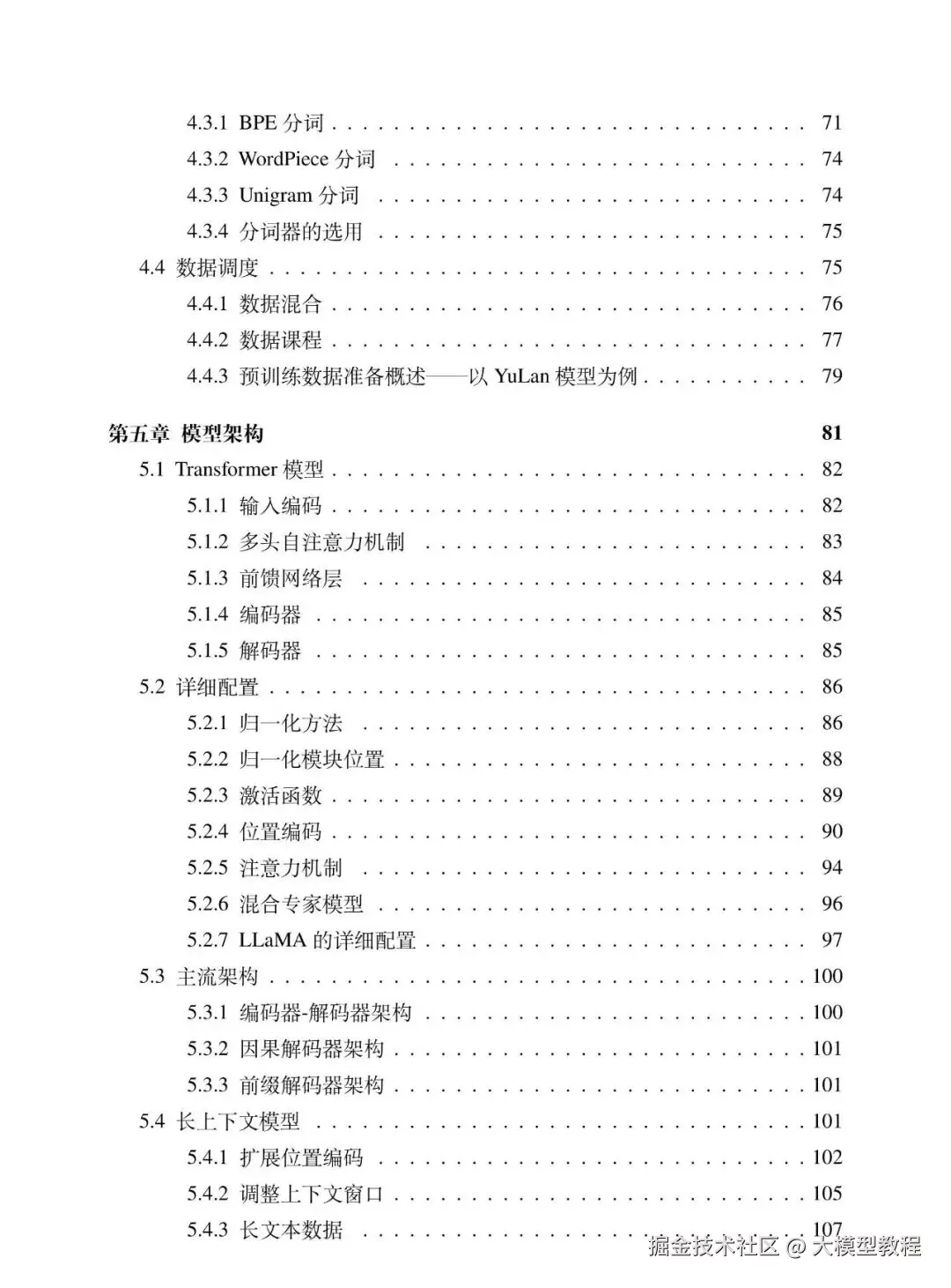 - 第五章 模型架构(Transformer 结构、大模型主流架构、细节改进)