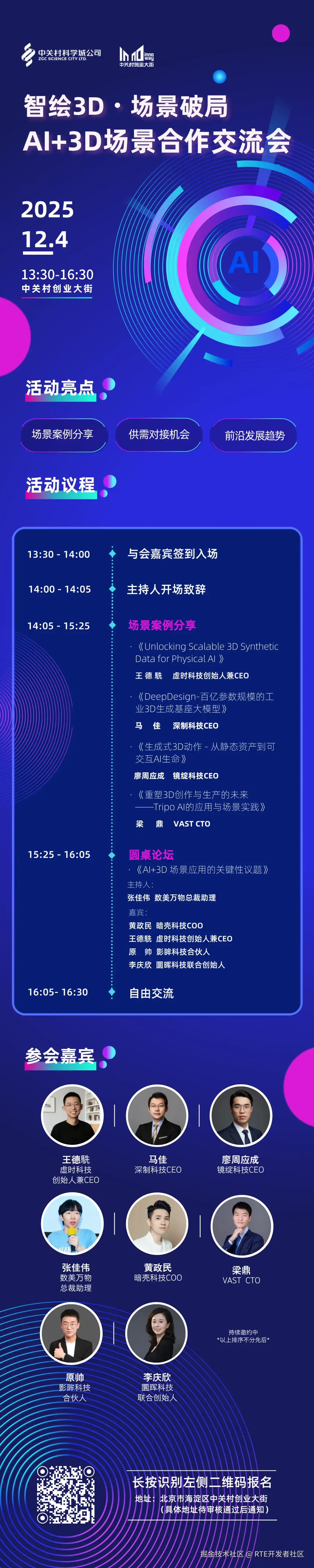 1、 活动推荐:AI+3D 场景合作交流会,北京,12 月 4 日