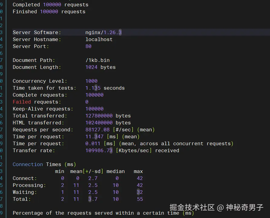 ab -n 100000 -c 1000 -k http://localhost/1kb.bin