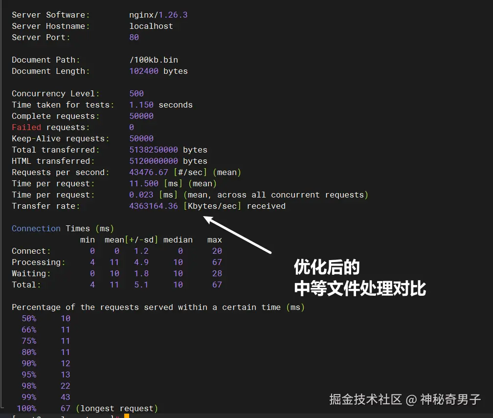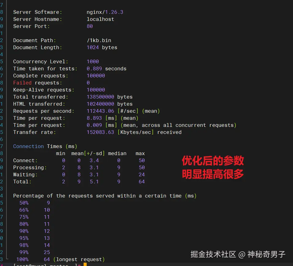 通过本次在 openEuler 25.09 上的 Nginx 性能优化实战,我们取得了显著的性能提升:
