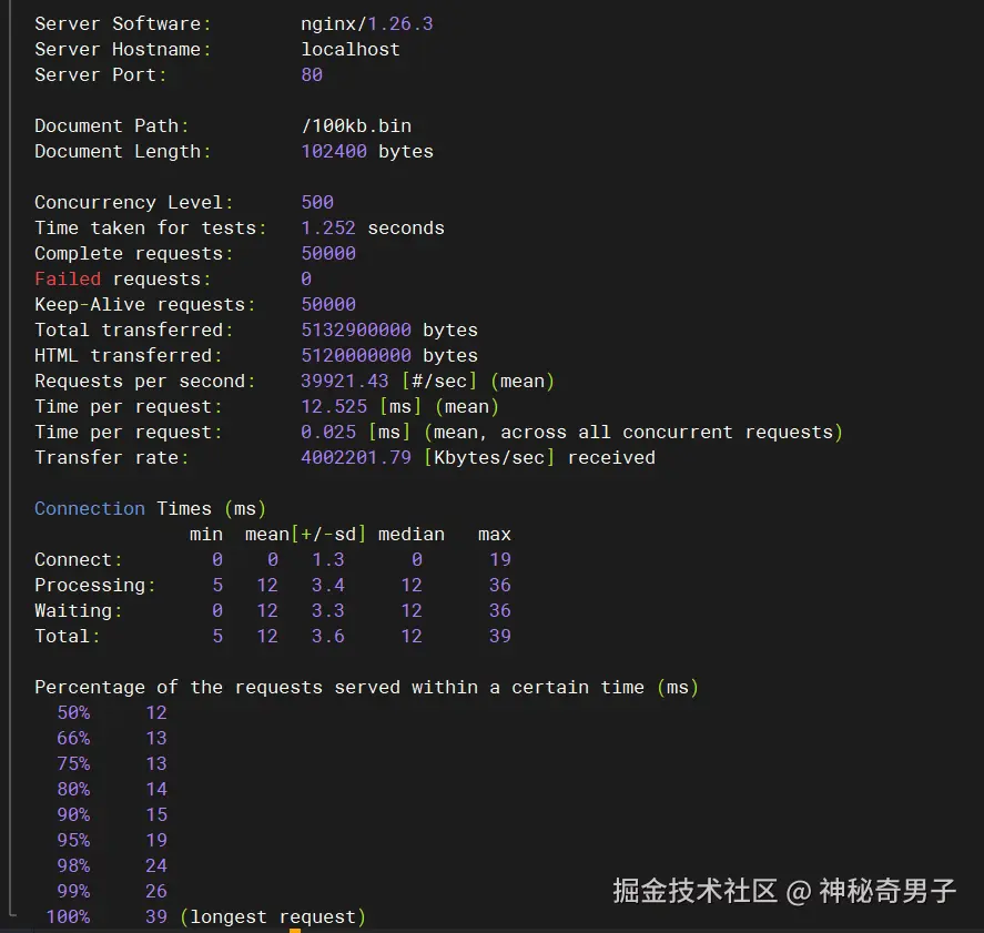 ab -n 50000 -c 500 -k http://localhost/100kb.bin