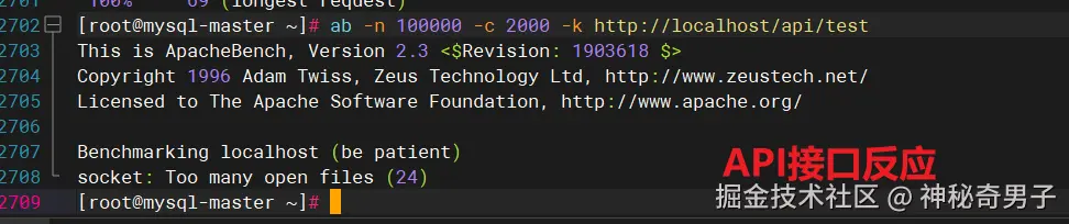注意: 测试过程中遇到 socket: Too many open files (24) 错误,通过优化文件描述符限制后解决。