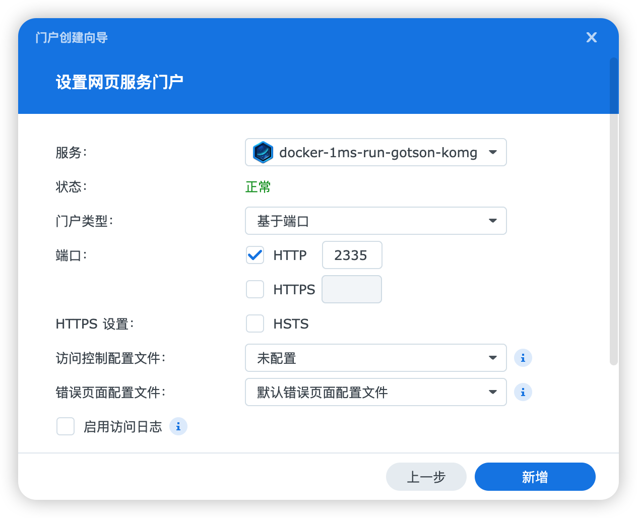在“设置网页服务门户”里,“服务”选择刚刚在“Container Manager”创建好的“komga”。