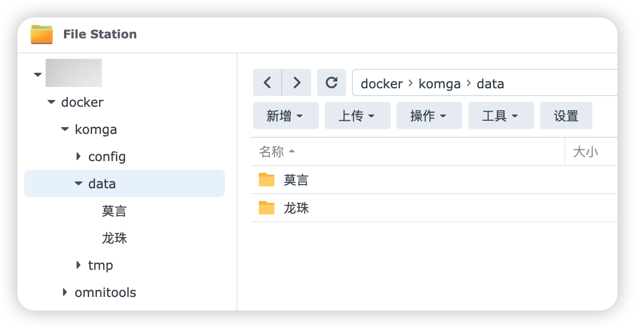 此时我们回到群晖的桌面,打开 komga/data 目录,丢一些漫画和小说进去。