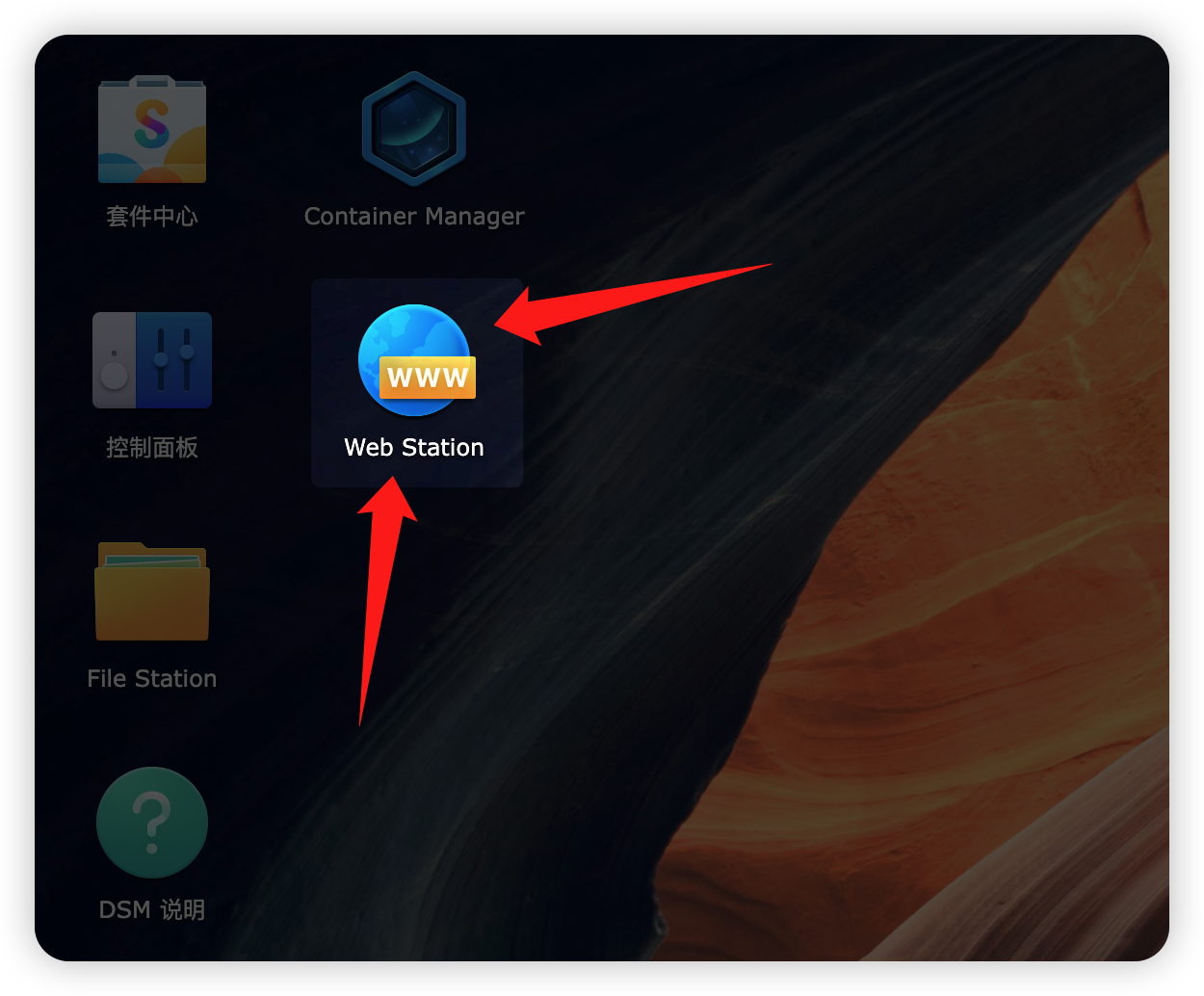 接下来打开“Web Station”。没这应用的可以在“套件中心”下载。