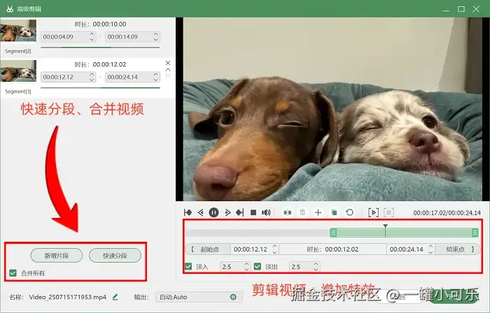 第3步:录制结束后,直接在数据蛙录屏软件内就能一站式实现视频剪辑与导出。点击 “高级剪辑” 选项进入专业剪辑界面,在这里不仅能便捷完成视频分段剪辑,还可添加各类丰富特效,让视频更具观赏性和吸引力。