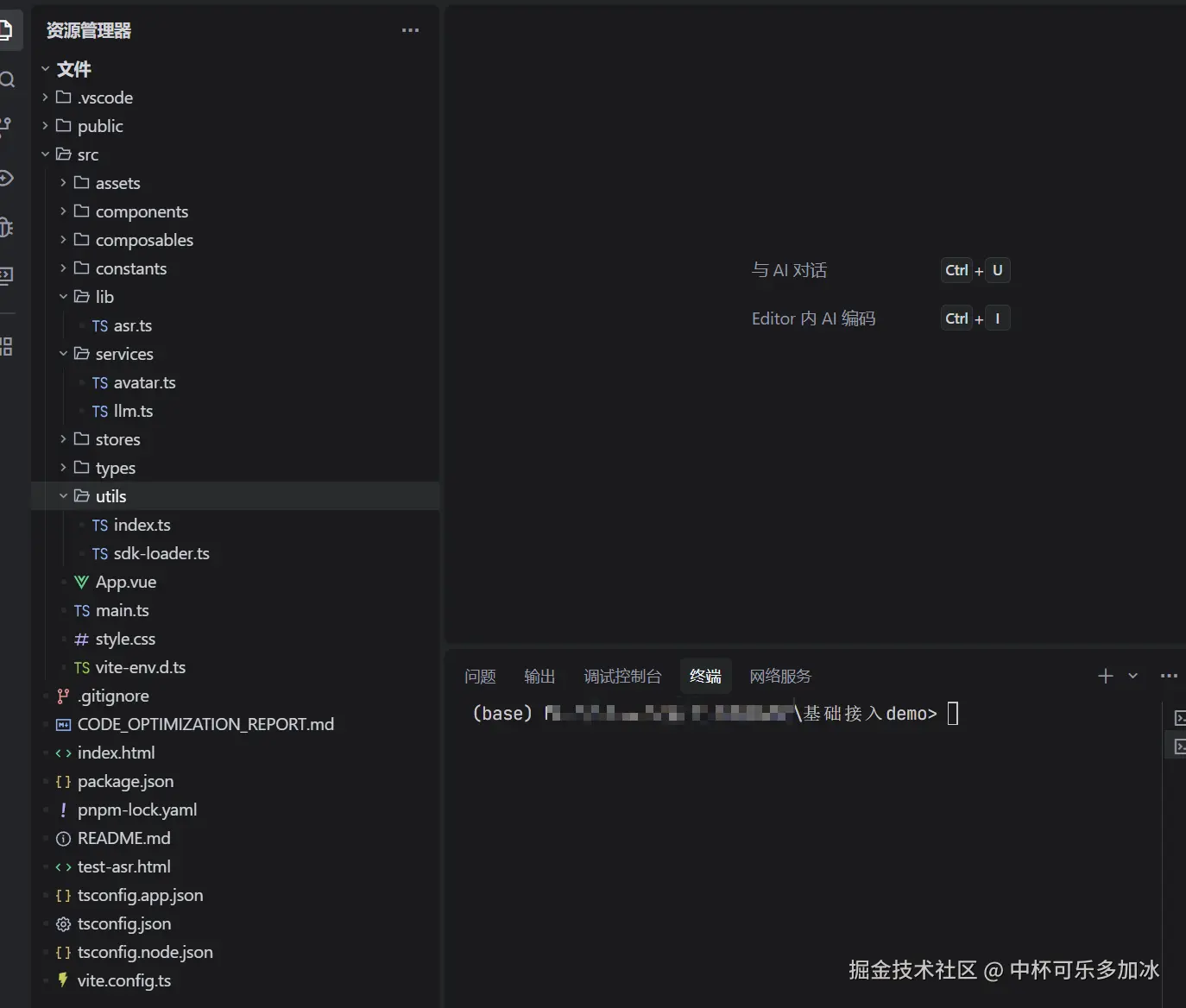 可以看到,官方的Demo项目将数字人交互的核心流程拆解为数字人SDK集成、大语言模型集成、 语音识别 ASR 等几个关键模块,其中,数字人SDK集成 (sdk.ts)驱动数字人进行实时交互的核心,大语言模型集成 (llm.ts)为数字人提供了智能问答和对话能力,语音识别 ASR (use-asr.ts)集成了腾讯云语音识别服务,提供实时语音转文字。