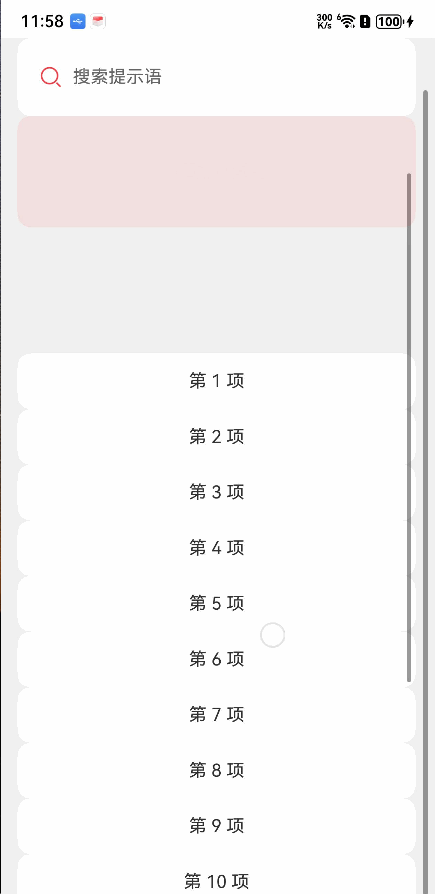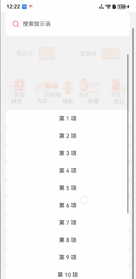 }.zIndex(1).height(HORIZONTAL_LIST_HEIGHT).width("100%").borderRadius(12).backgroundColor(Color.Red).justifyContent(FlexAlign.Center).opacity(this.horizontalListOpacity)//添加不透明度属性