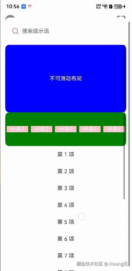 从图上来看,当手指在内部的Scroll滑动时只能滑动内部的Scroll,在外部Scroll滑动时,只能滑动外部的Scroll,这和我们的需求不符合。 - 第三部分的物品卡片没有展示出来。