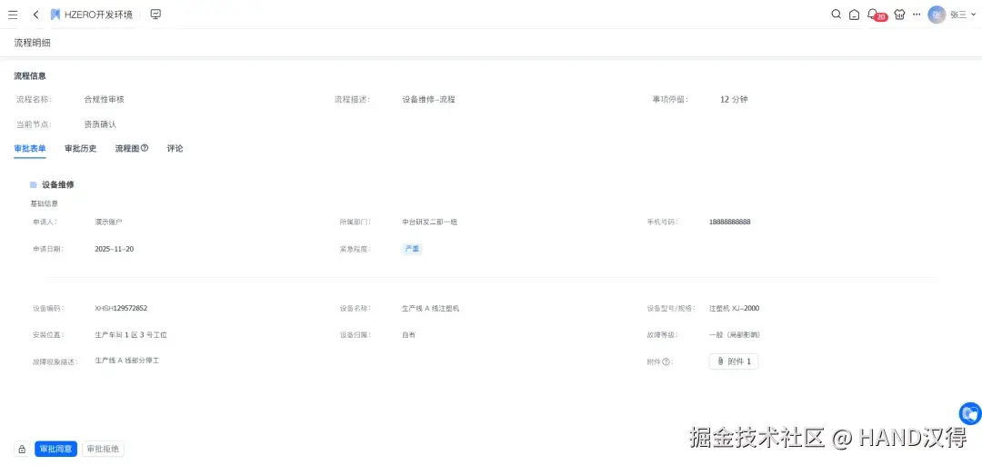 流转至【合规性审核】子流程审批时,预览查看的审批表单是【设备维修申请单