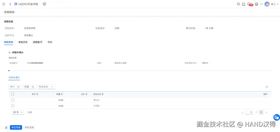 流转至【合规性审核】子流程审批,预览的审批表单是【采购申请单】