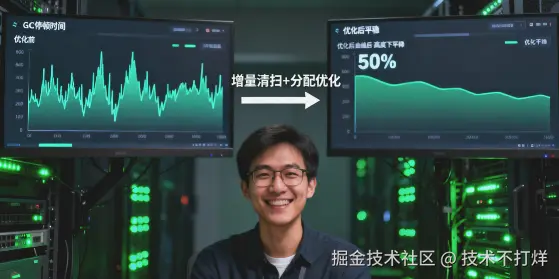 - 优化目标:降低 GC 停顿时间(P99 延迟)、提升高并发场景吞吐量 P99从10ms降到2ms,高并发QPS稳升20%。