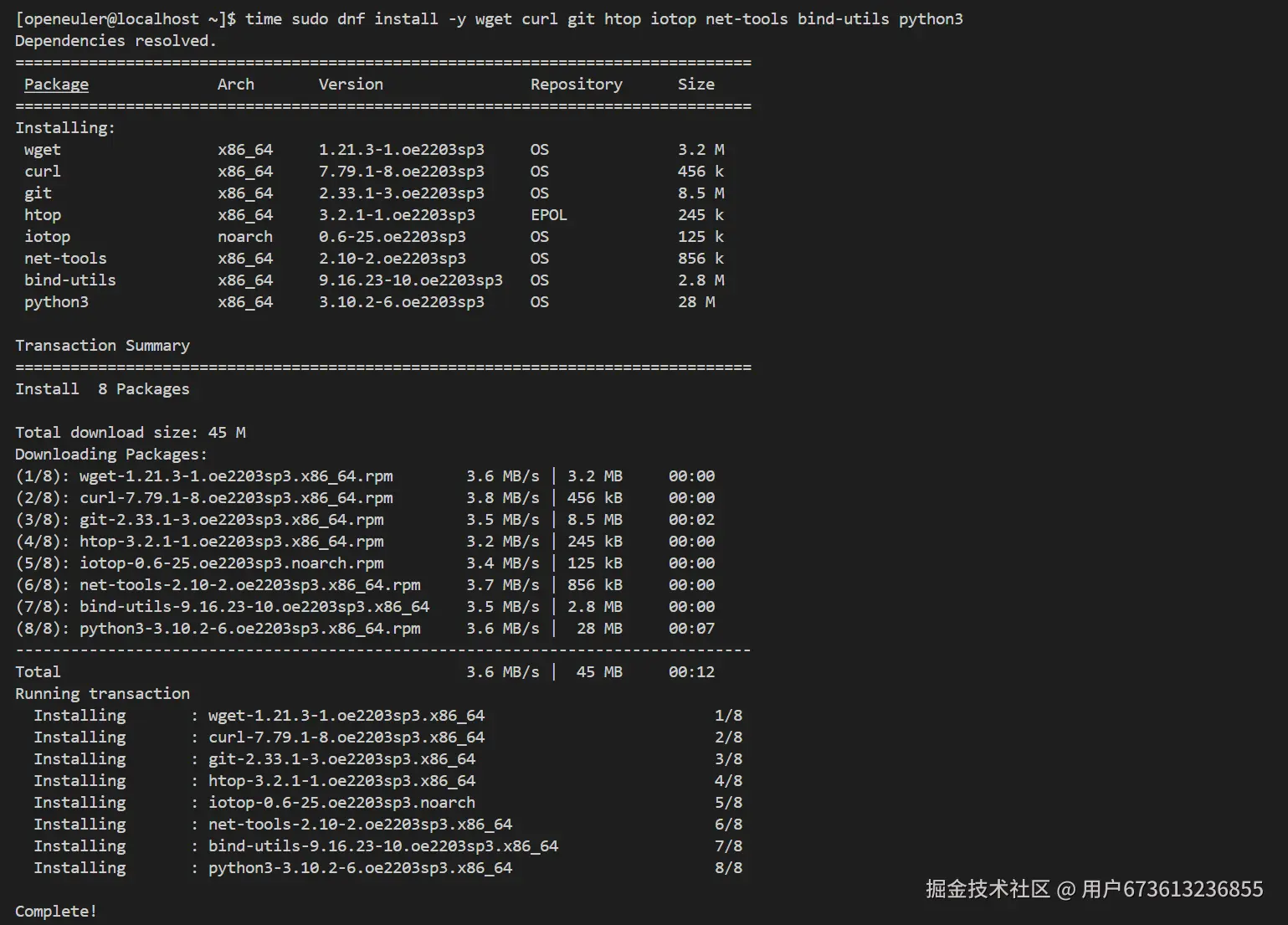 有的时候我们安装一个软件包要特别久,这严重影响到了我们的开发效率,接下来我们就来使用DNF进行下载测试,看看效果如何。