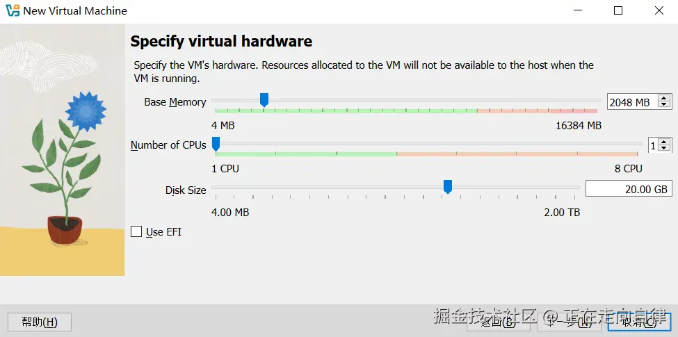 我准备在VirtualBox虚拟机里先体验一把。创建虚拟机的过程很标准: