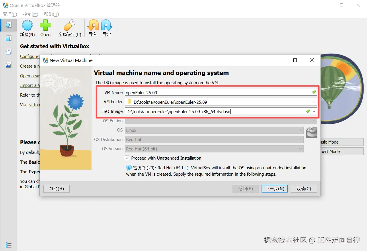 - 输入虚拟机的名称(如"openEuler-25.09")