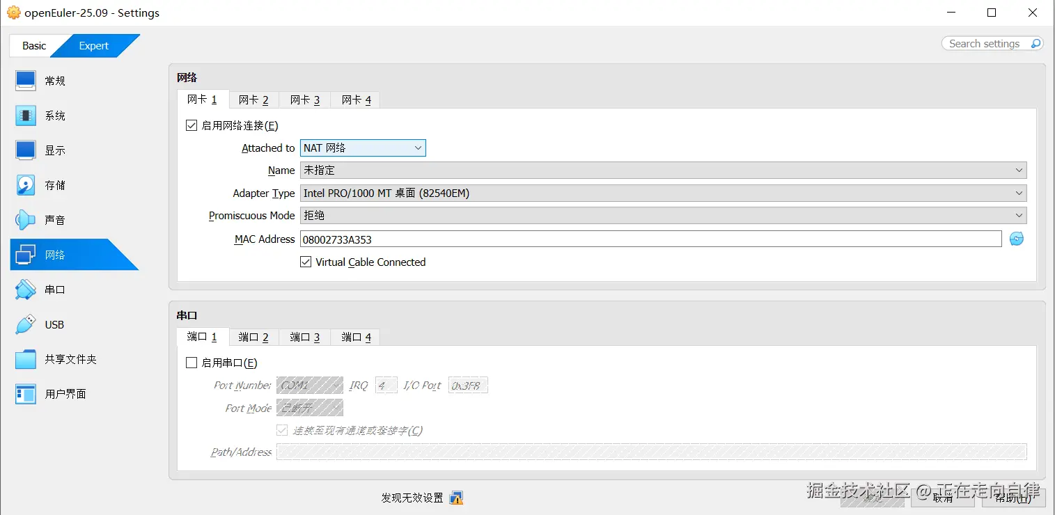 安装程序很贴心地检测到了我的网络连接,我设置了主机名为my-openeuler-dev。