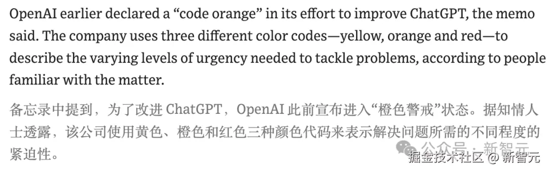 几周前,为了改进 ChatGPT,OpenAI 曾宣布进入了「橙色警报」状态。