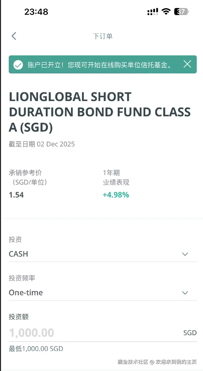 理财路径:投资 -> 单位信托 -> 搜索lionglobal short基金 -> 买2w
