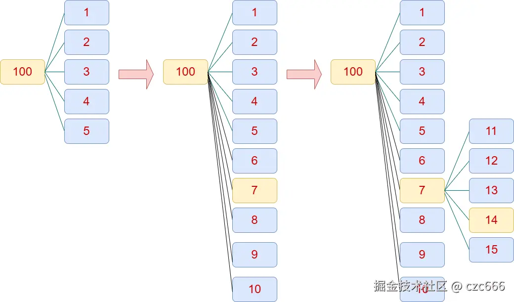 每一个框表示一条评论,框内有全局唯一的评论id。假设现在需要跳转到评论14,那么现在需要渲染出路径上的所有评论,直到目标出现。