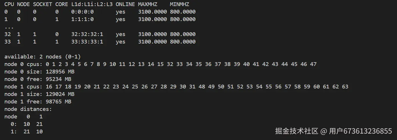 # 查看CPU拓扑结构
