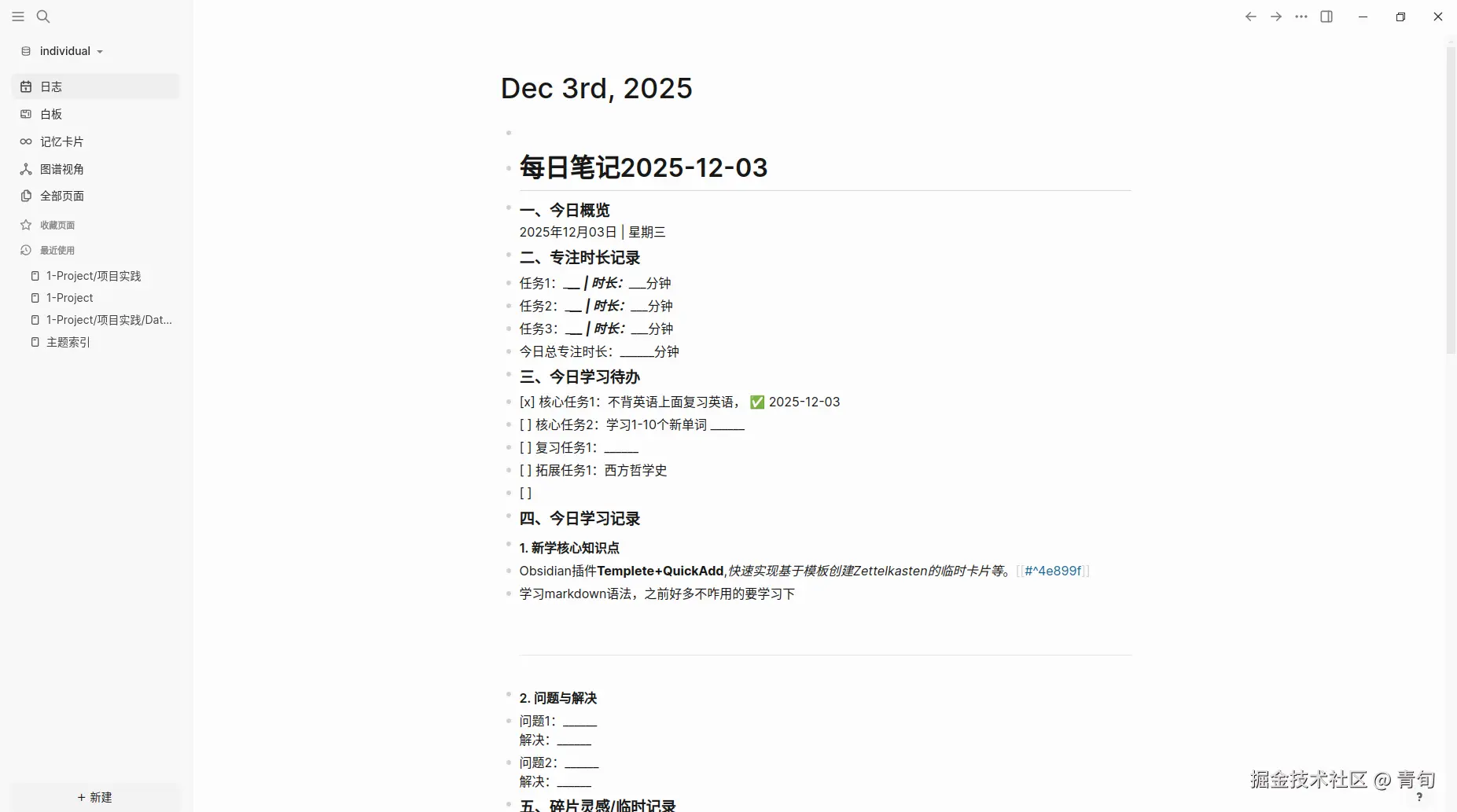 最近正好因为自己个人知识管理,无法有效组织的时候,想到能不能让 Solo 模式找找呢,于是再次看到了 Obsidian, Logseq 等软件,也看到了 PARA 方法组织个人知识管理