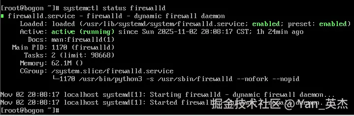 前置核查指令(openEuler端) :systemctl status firewalld,显示“active (running)”即为正常启动