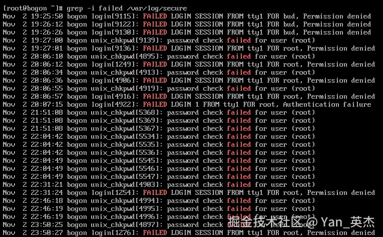 快速验证指令:grep -i failed /var/log/secure