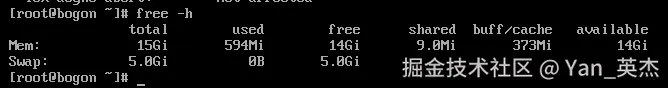 执行指令:free -h
