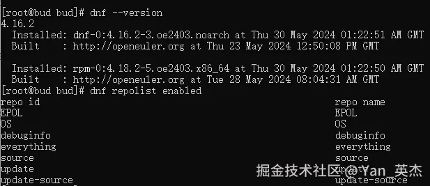 查看dnf版本及仓库配置 dnf --version dnf repolist enabled