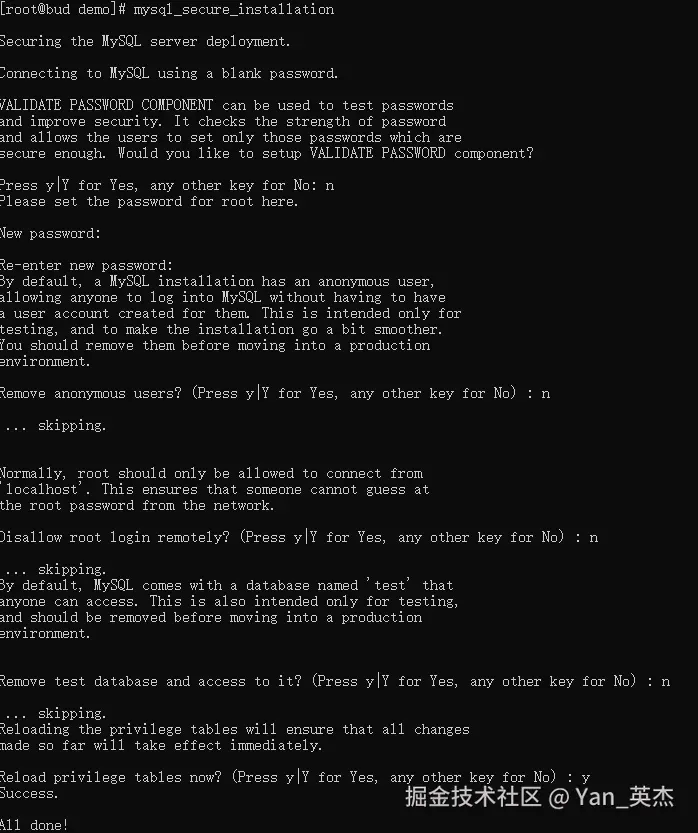 mysql_secure_installation设置密码、禁用匿名用户(命令参数可复制参考) -