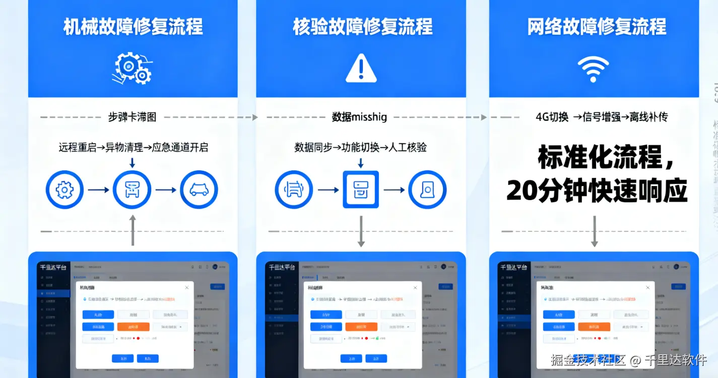 3. 修复不及时:缺乏标准化修复流程,且无法远程诊断,需等待技术人员到场,故障修复时间动辄 1-2 小时,严重影响运营。