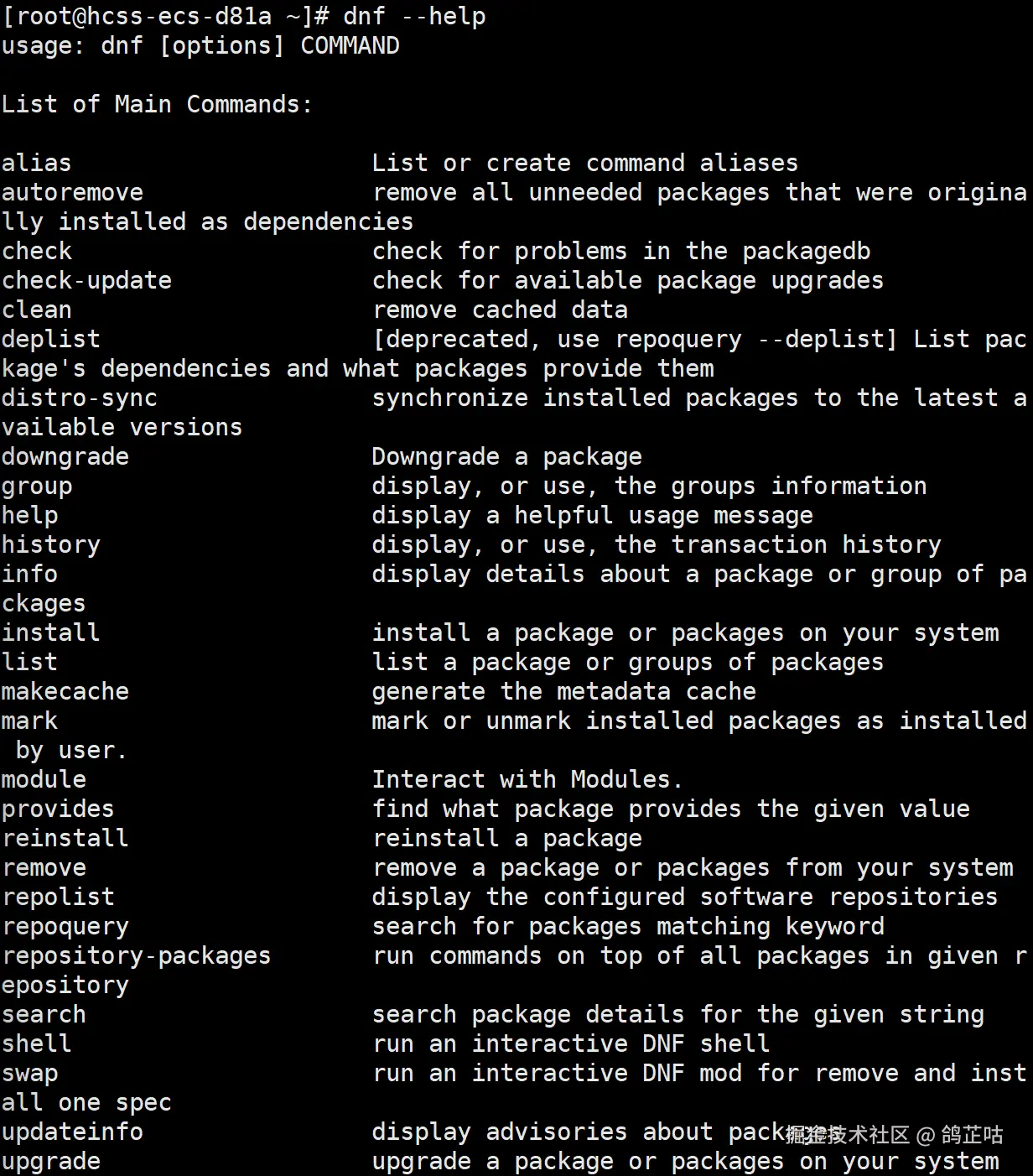 查看DNF在openEuler中的help帮助信息