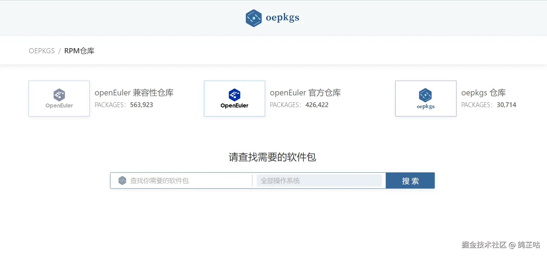 如果说 DNF 是“智能管家”,Oepkgs 仓库就是“管家背后的超大仓库”——专门存放适配 openEuler x86_64 架构的补充软件包,解决“官方源没有、自己找又麻烦”的痛点。目前oepkgs 镜像源中已有2w+款软件包,用户可以在 search.oepkgs.net/search/ 上进行查询并下载使用。