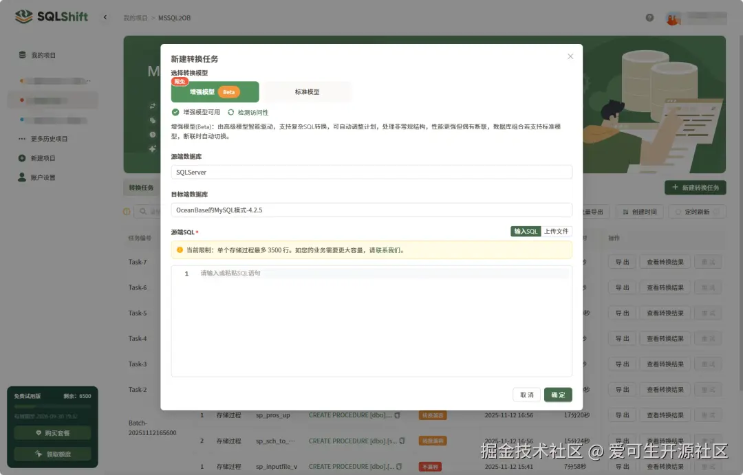 SQLShift 是面向企业的数据库非表对象迁移平台,基于大模型实现存储过程、触发器等对象的跨库自动转换与兼容修复,降低迁移成本与风险,支持 Oracle、PostgreSQL、GaussDB、OceanBase、SQLServer 等。本次更新是 SQLShift 发布以来最重要的一次架构升级。