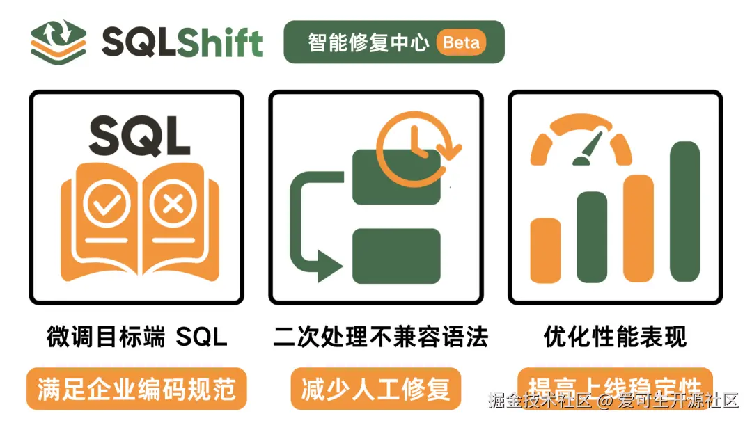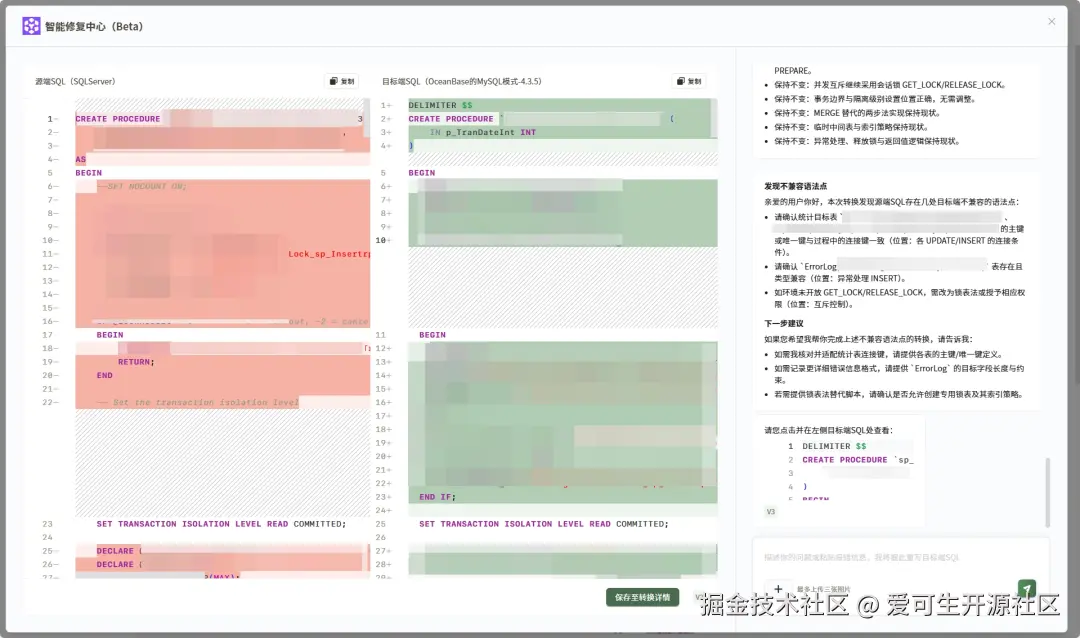 智能修复中心 随 增强模型(Beta) 同步上线,用于进一步提升迁移后 SQL 的可用性与一致性,具体包括: