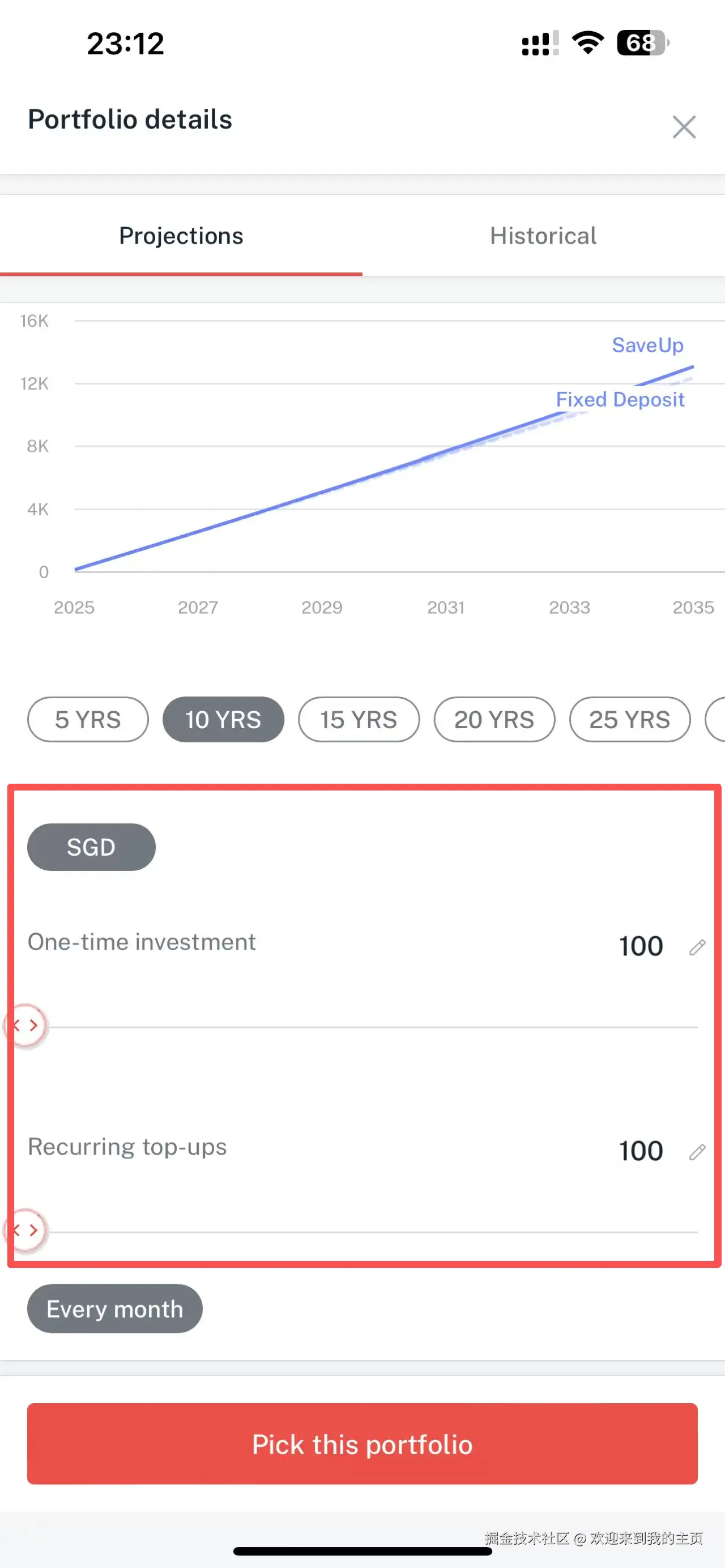 - 再设置 100 SGD recurring(本月开始) → 这样首月总投入 200 SGD