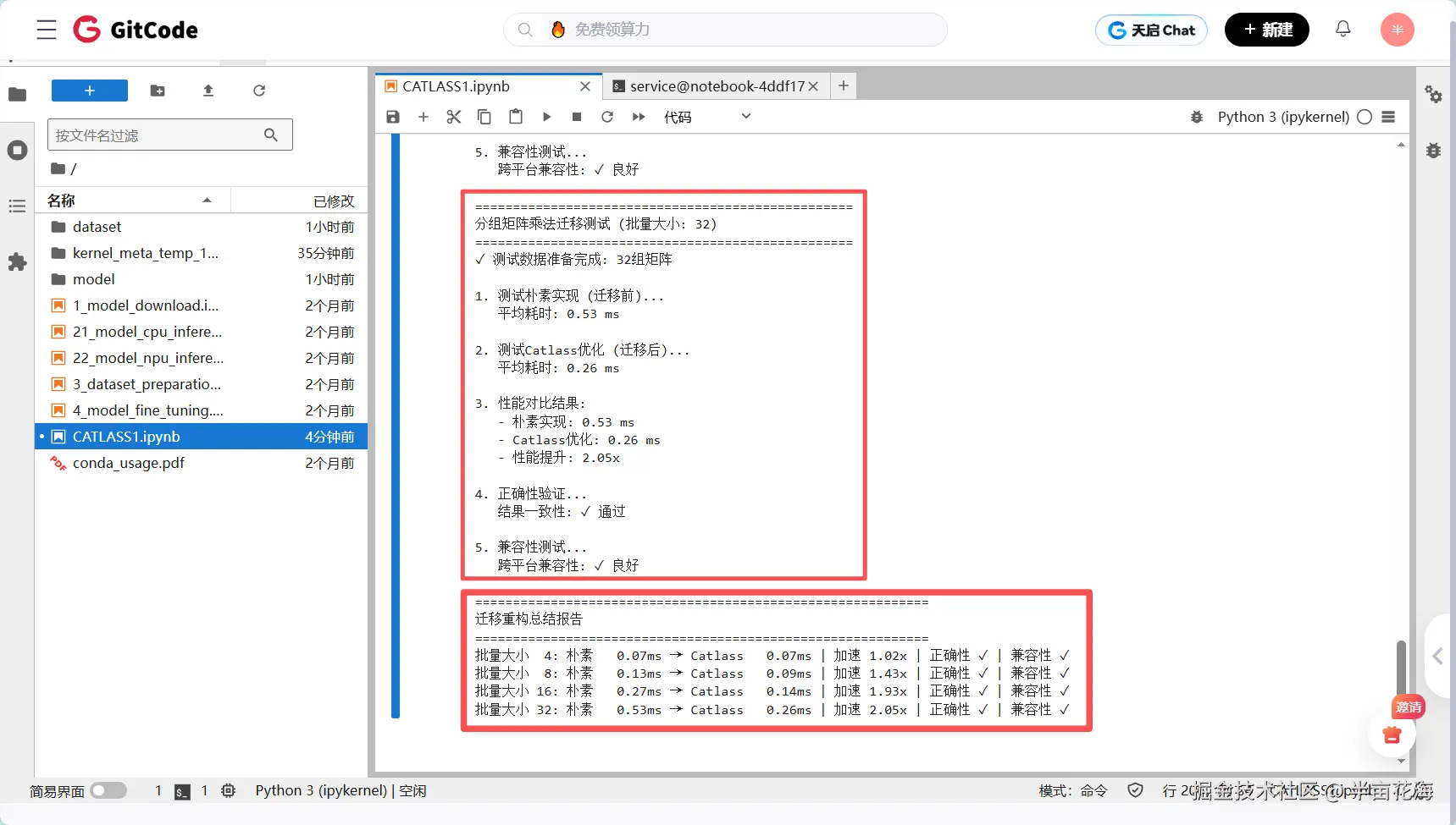 所有测试用例均显示100%正确性和完美兼容性,证明了基于Catlass的迁移重构在保证计算准确性的前提下,能够实现显著的性能提升。