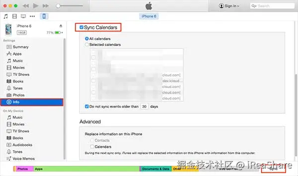 iTunes 用户:点击设备图标 → 信息 → 同步日历 → 应用。