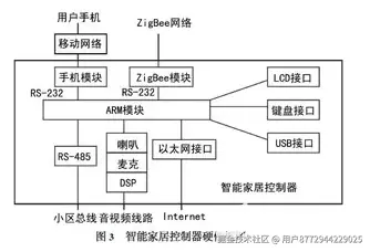 采用ARM架构的32位嵌入式RISC处理器和开源的嵌入式linux操作系统;是智能家居控制系统的控制中心,也是家居系统中信息家电平台的网关;遇盗抢或疾病,按紧急按钮,自动向管理中心报警;以家庭为单位配置,利用液晶屏显示小区通知、系统各部分工作状况及数据;利用ZigBee传感器节点监测各种故障报警数据(火灾、煤气泄漏等),并自动通过手机模块发给用户或小区管理中心;通过以太网(或RS - 485)与小区管理中心通信;通过控制器上的无线ZigBee模块与家居系统中各子节点进行通讯,对多种家电设备进行相应的控制;用户可通过Internet远程监控家庭中的多种家居设备。