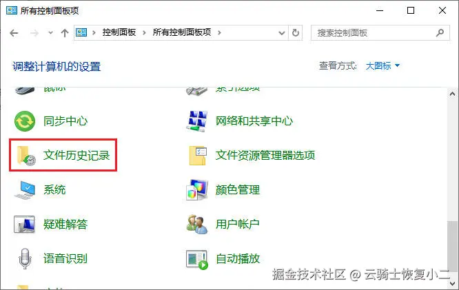 进入“控制面板”>“文件历史记录”,浏览不同时间点的版本。