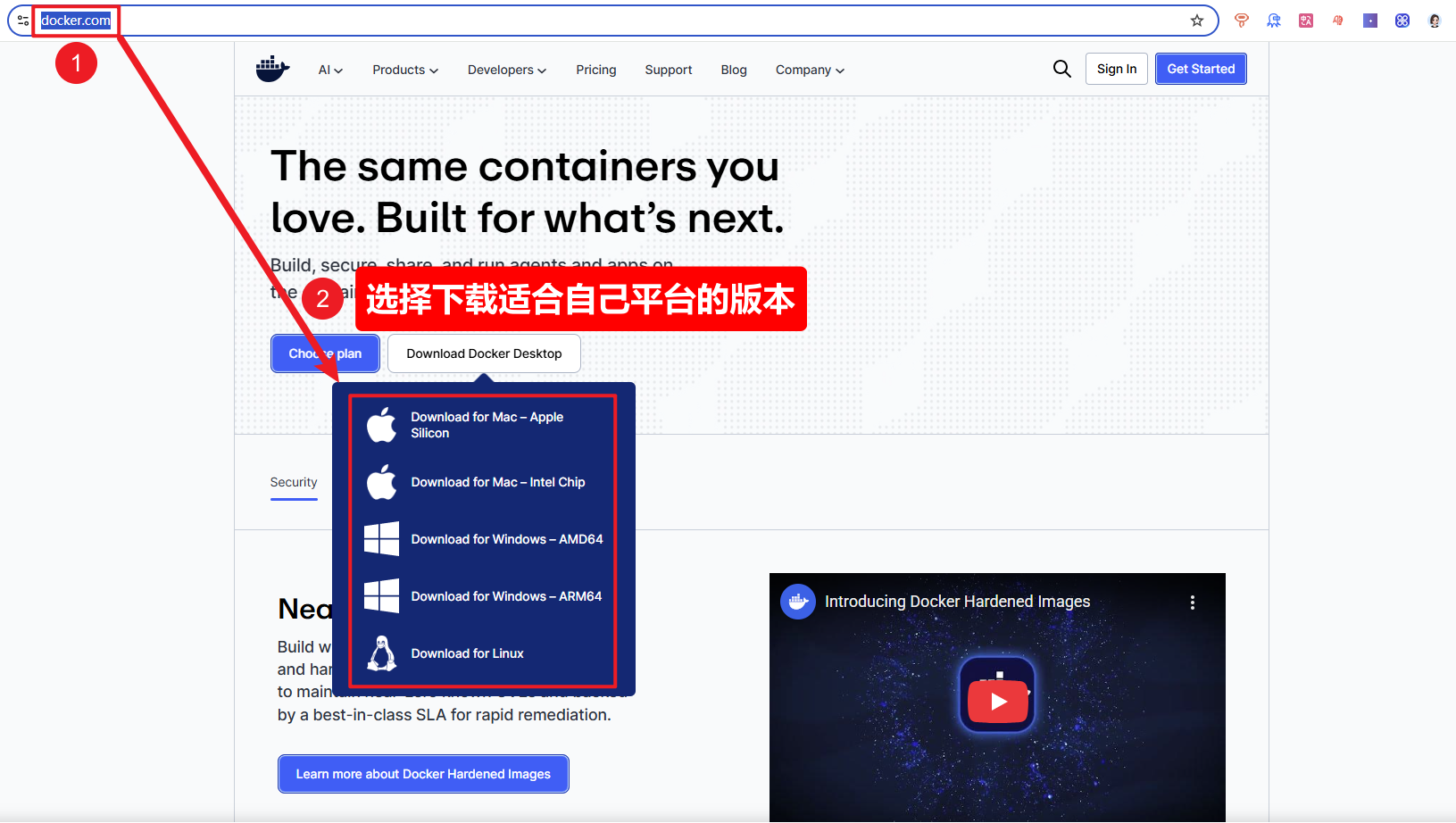 提示:请根据您的操作系统(Windows 或 macOS)下载对应的 Docker Desktop 版本并进行安装。