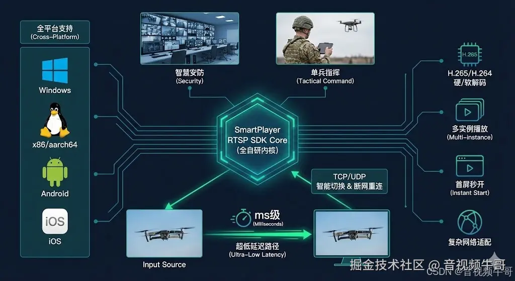 大牛直播(SmartPlayer)RTSP 播放器 SDK 用 100–200ms 的端到端时延、行业级稳定性和完整的跨平台一致性,给出了近乎完美的答案。