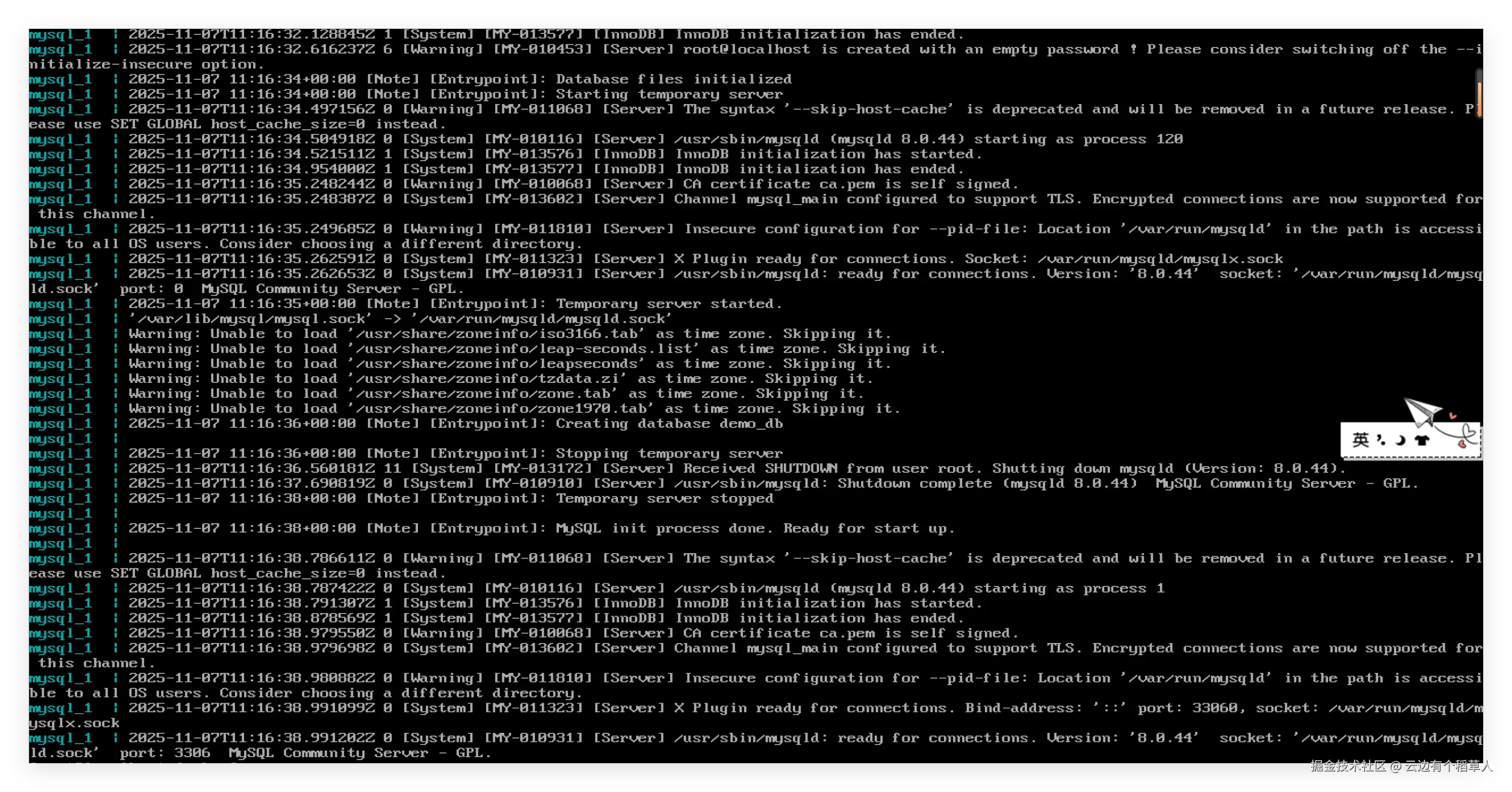 MYSQL_DATABASE: demo_db # 初始化数据库