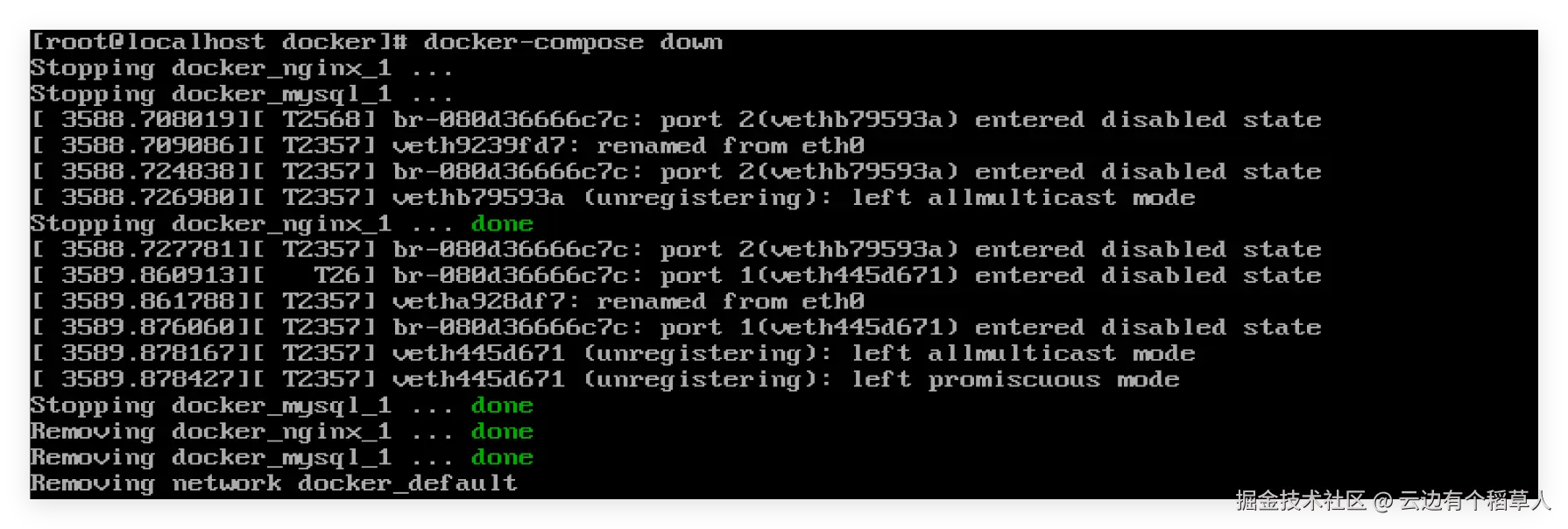 以部署“Nginx + MySQL”服务为例,创建docker-compose.yml文件,定义两个容器的关联关系: